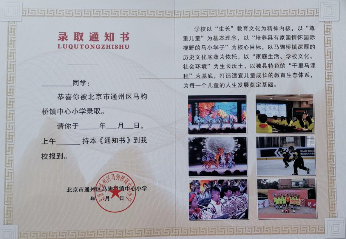 北京各区2022年小学录取通知书陆续发布,其中已有家长收到2022年通州区马驹桥镇中心小学录取通知书,北京幼升小网为您分享相关内容。