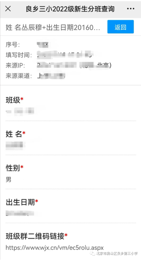 房山区良乡三小2022级新生分班结果查询