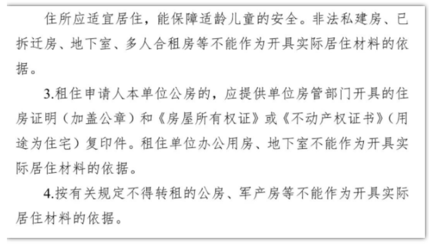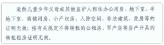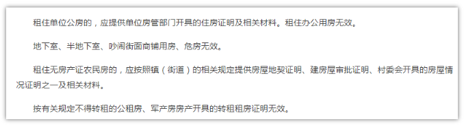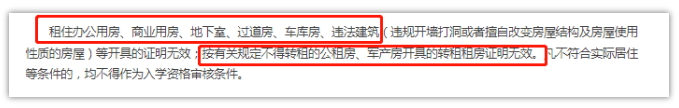 3、过道房、地下室、转租的公租房、商业用房等不能作为入学依据!