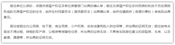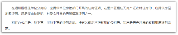 东城区:2022年东城区非本市户籍适龄儿童少年入学审核实施细则中明确指出:商业用房、过道房、转租的公租房等不能作为入学依据,如下图:
