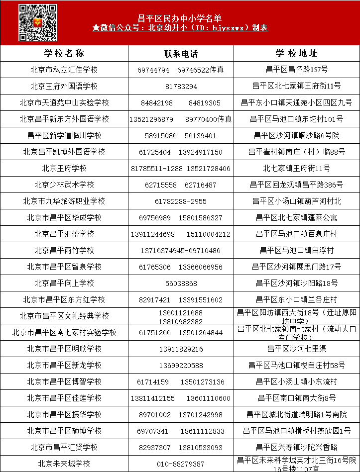 本文以昌平区教委发布的昌平区民办小学相关信息,2023年昌平区幼升小家长请以入学当年实际情况为准;
