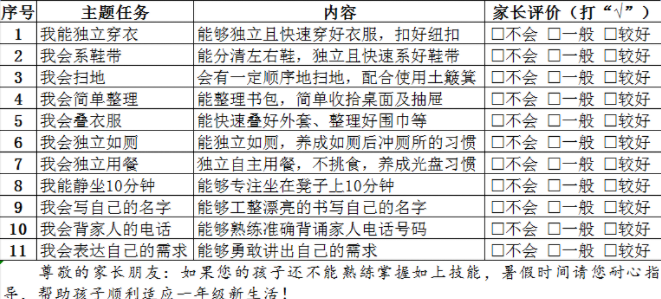 孩子们,小学生活即将开启,你准备好了吗?如果你能很好地掌握下面这些生活小技能,那恭喜你,给自己的小学生活掀开了美丽的第一篇章。加油吧!