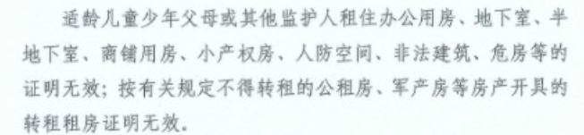 1.结合目前大部分城区要求来看:租住单位公房的,应提供单位房管部门开具的住房证明及相关材料。租住办公用房无效。地下室、半地下室、吵闹街面商铺用房、危房无效。