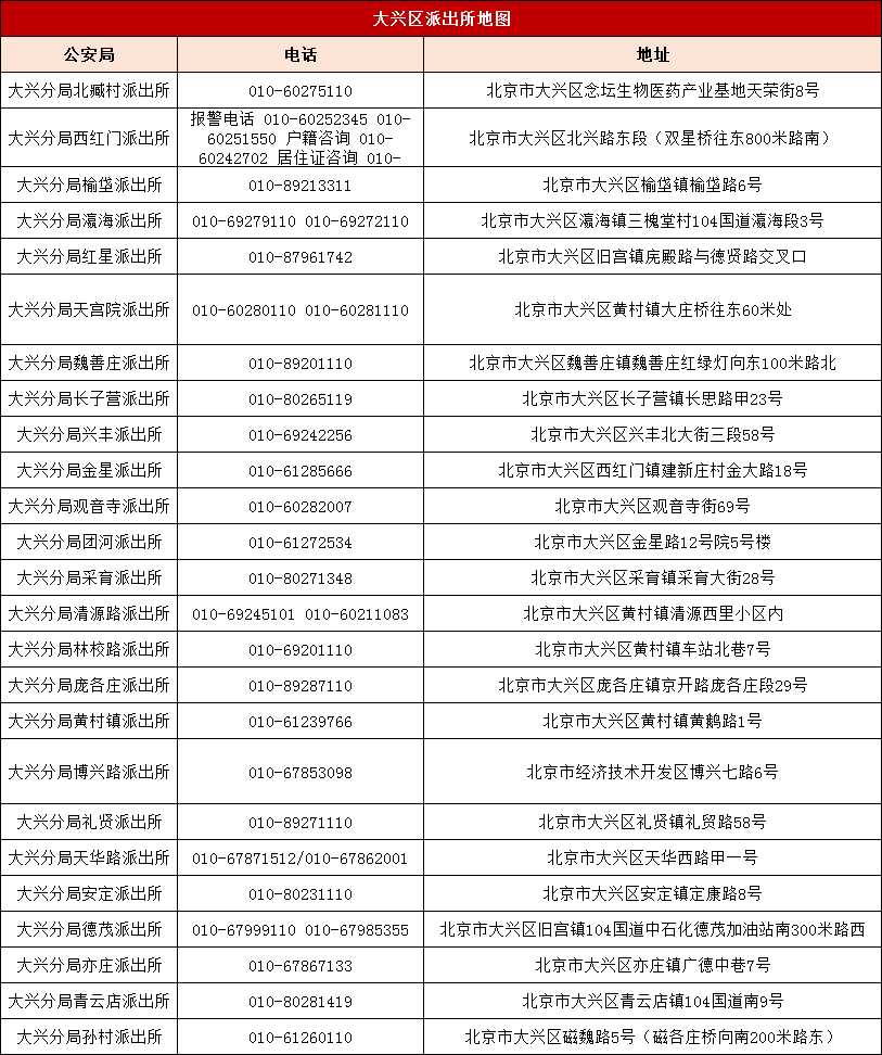 2023年幼升小参考:大兴区派出所地图(北京居住证办理地址)