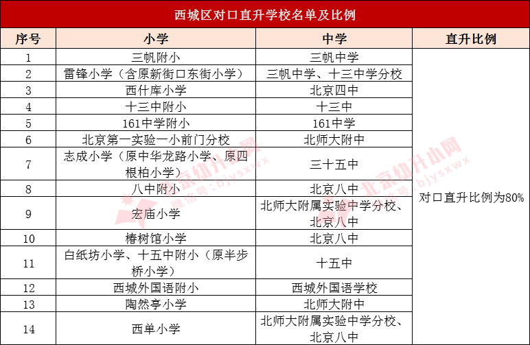 西城对口直升派位名单及比例相关信息,参考近两年公布的相关情况进行了整理,详情如下: