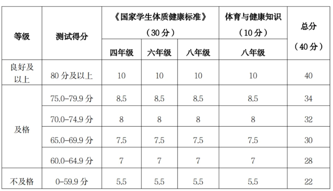 详细点击查看:最新版:2022年北京小学生1-6年级体测项目和评分标准汇总