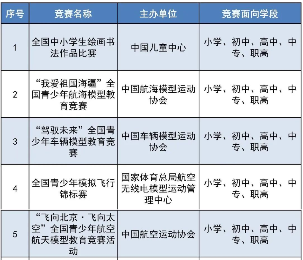 以上竞赛活动举办时间原则上为2022年9月至2025年8月,在此期间每学年举办不得超过1次,累计不超过3次。教育部要求竞赛以及竞赛产生的结果不得作为中小学招生入学的依据和高考加分项目。
