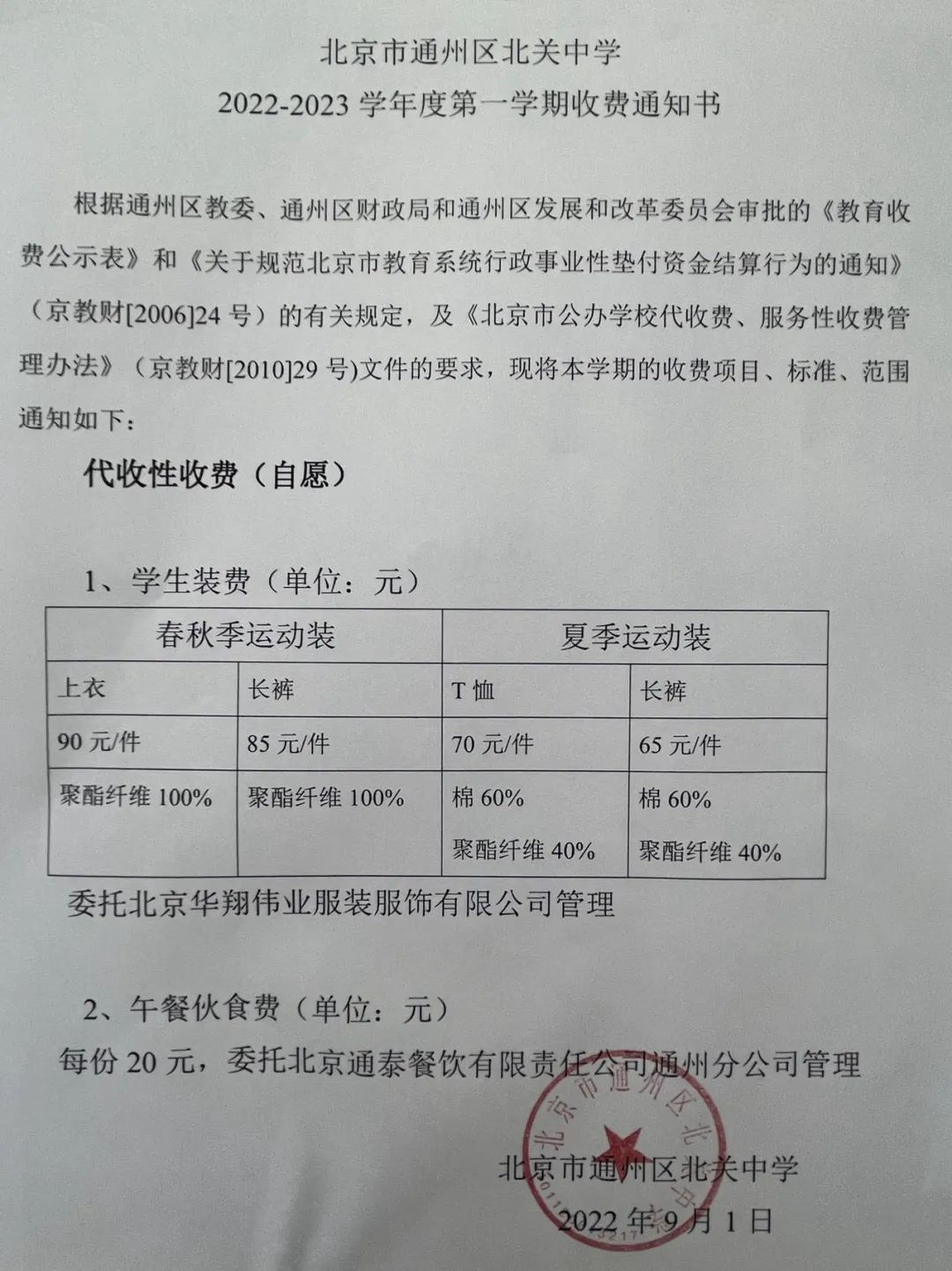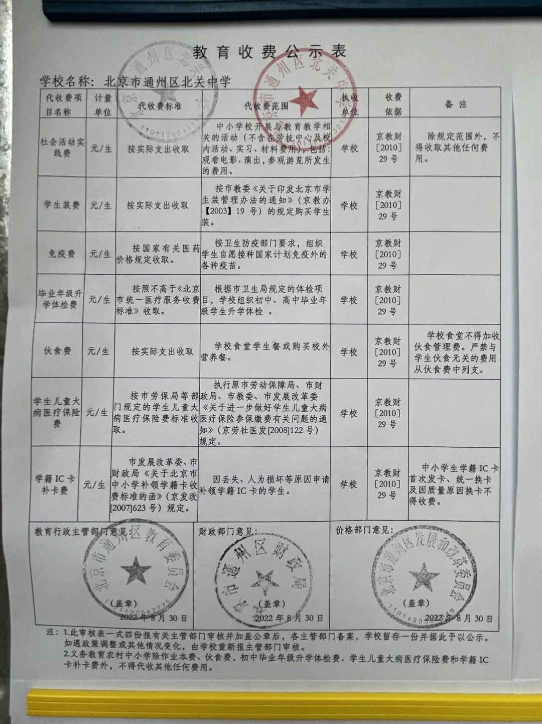 北京各城区中小学2022-2023学年度教育收费公示陆续发布!现为您分享2022年通州区北关中学教育收费公示,北京幼升小网团队为您分享相关内容。