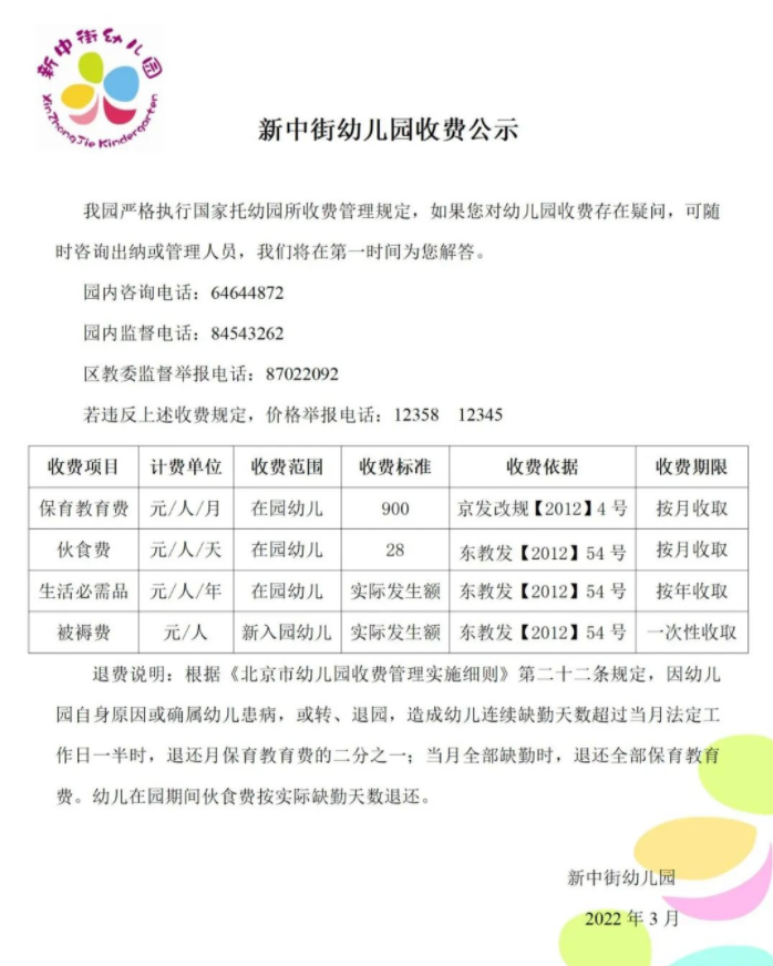 2022年通州区新中街幼儿园收费公示,新中街幼儿园小中班、大班保育教费及伙食费标准发布,北京幼升小网为您分享相关内容,新中街幼儿园家长可了解详情。