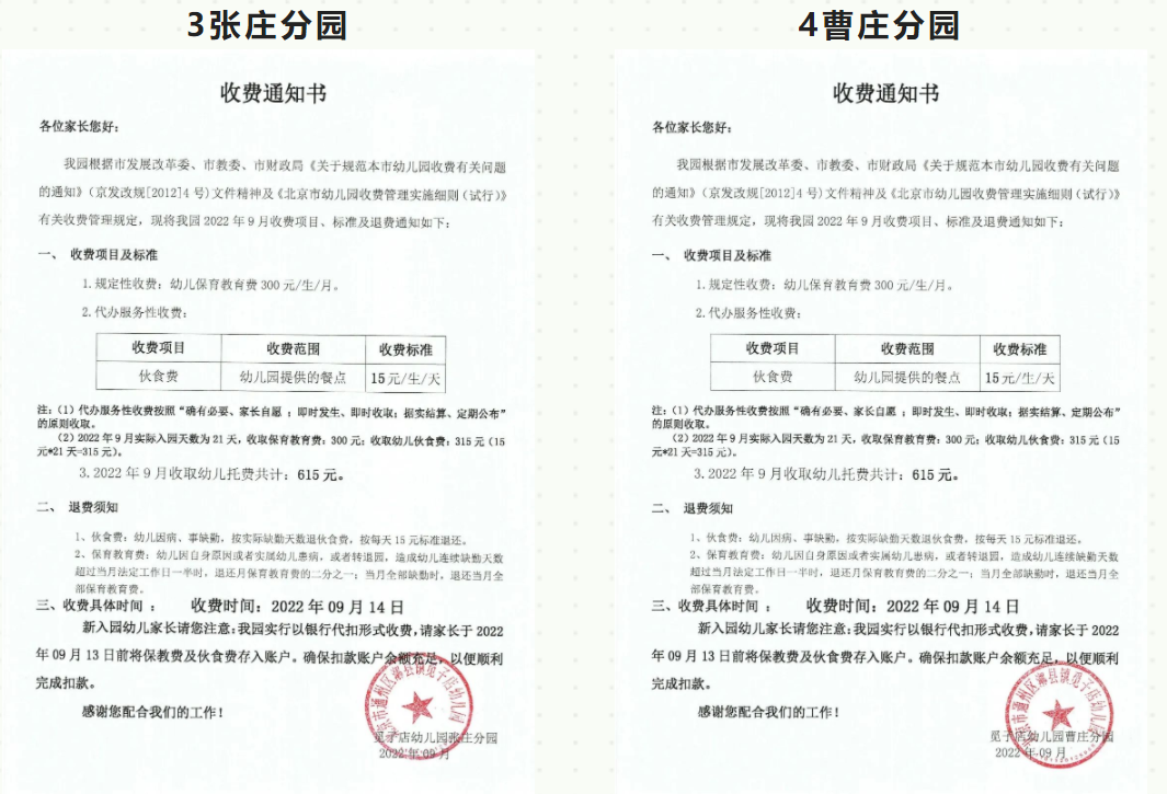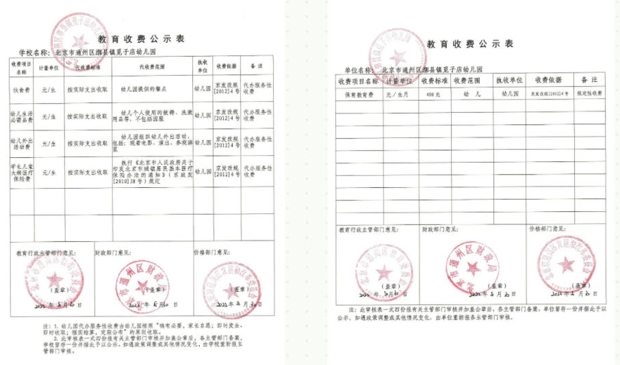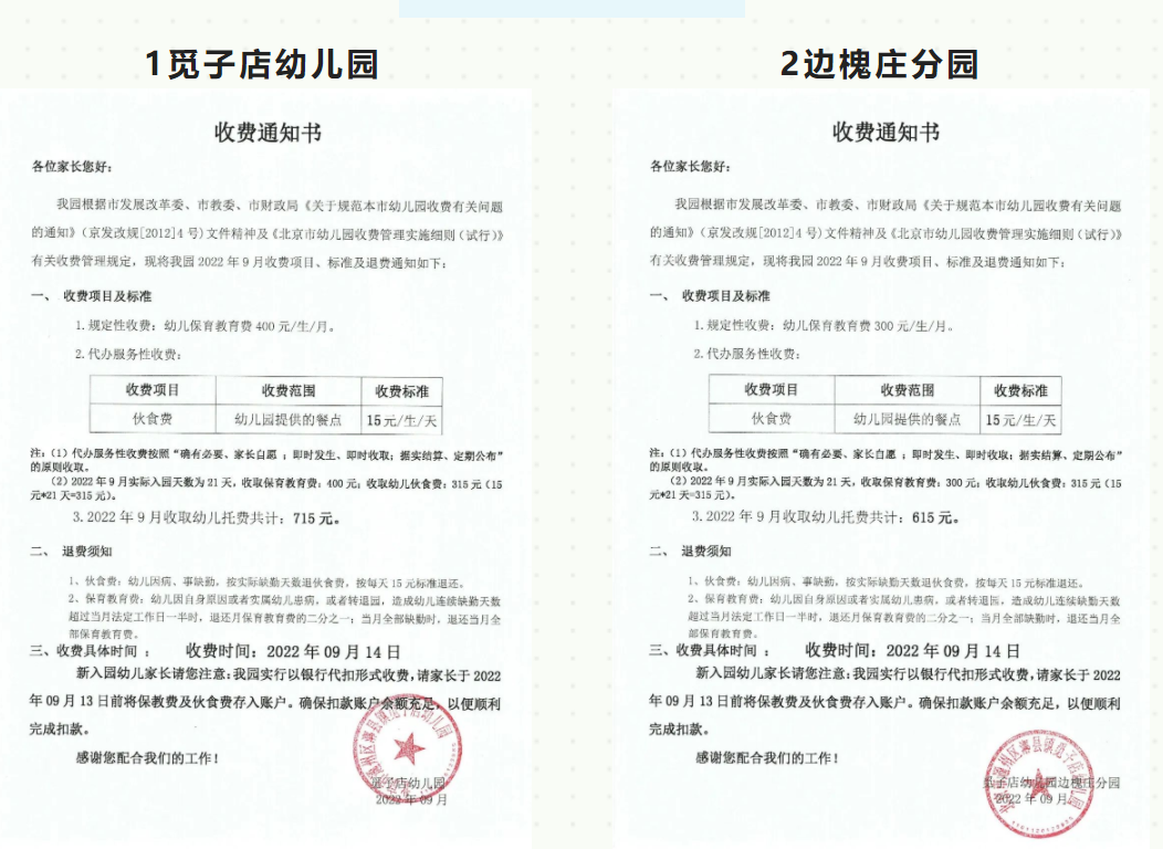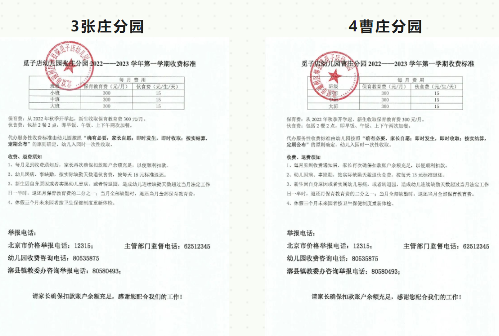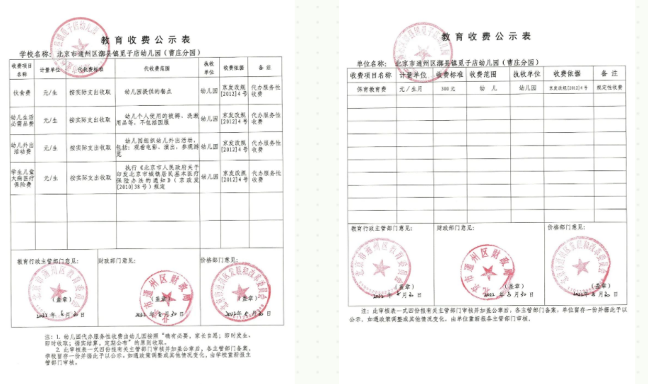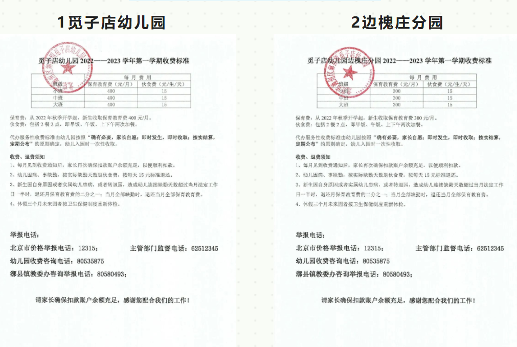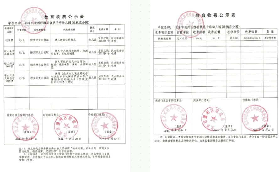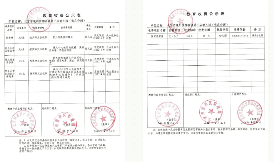2022年通州区漷县镇觅子店幼儿园收费公示