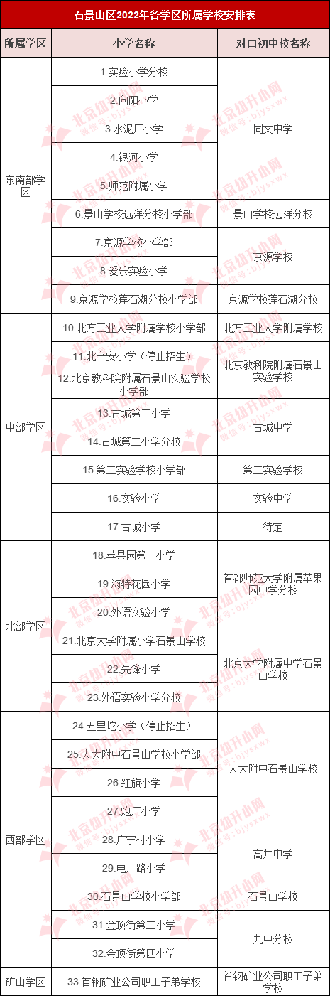 2023幼升小的家长注意,北京幼升小网团队整理了石景山区学区划分及对应的中小学名单,赶紧一起来看看详细内容。