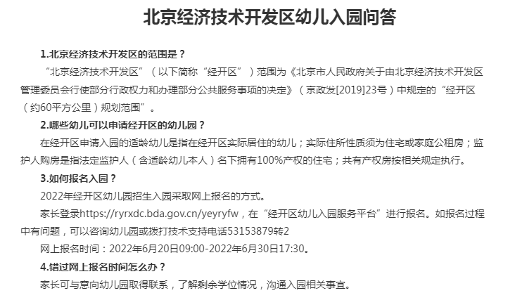 北京经济技术开发区幼儿入园问答