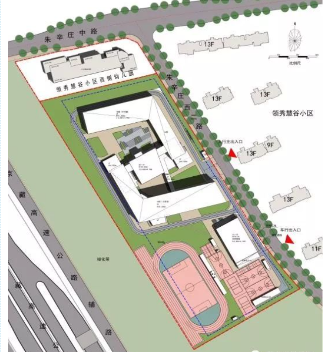 领秀慧谷小区西侧九年一贯制学校项目位于史各庄街道朱辛庄村,总用地面积约3.6公顷。