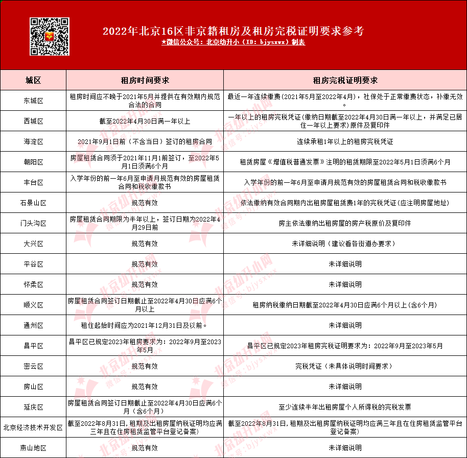 2.各城区租房完税证明具体要求请以北京各区2023年幼升小非京籍租房完税证明要求大汇总参考准备;