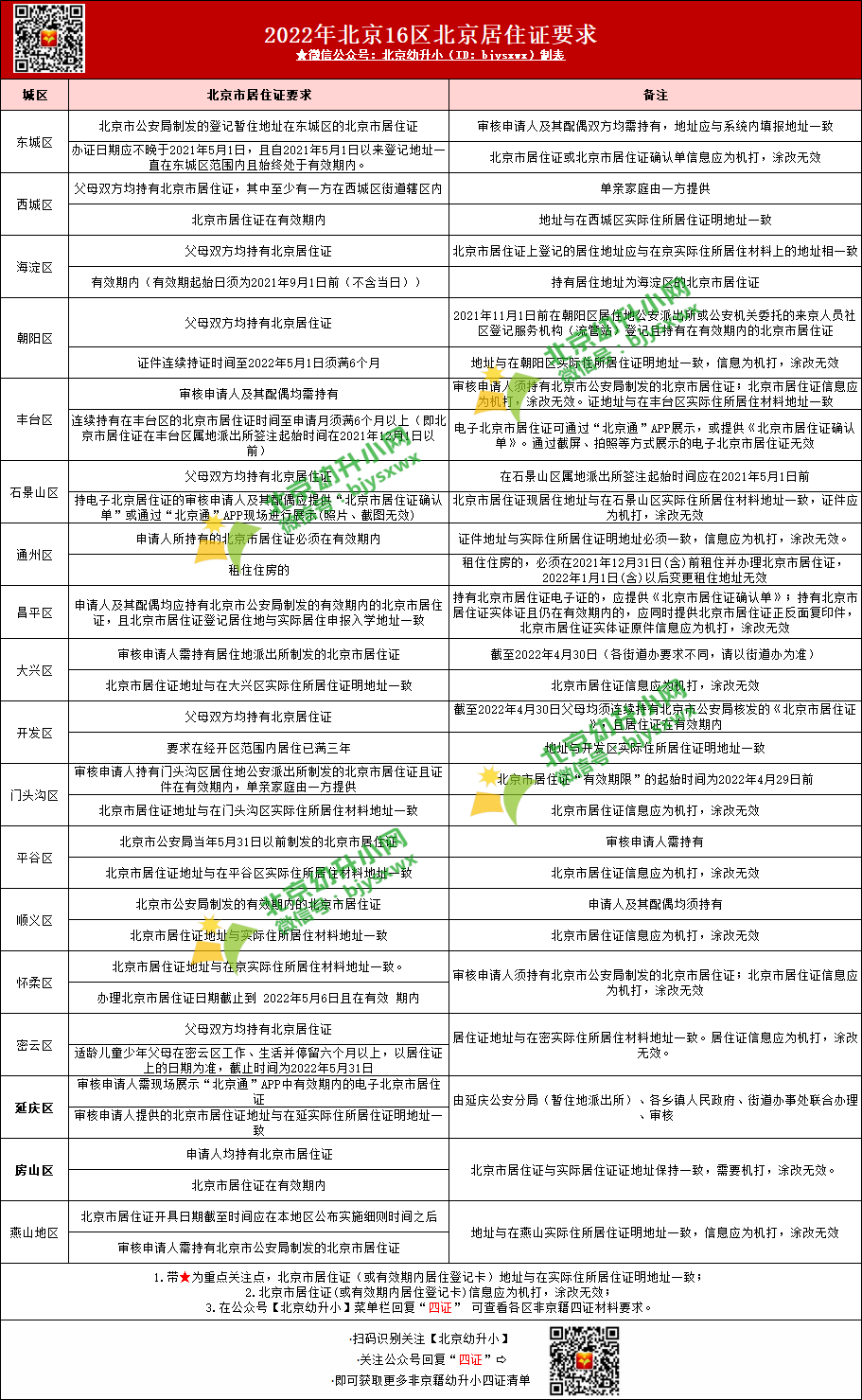 北京17区2023年幼升小入学材料清单汇总(含京籍、非京籍、按京籍对待提前准备)