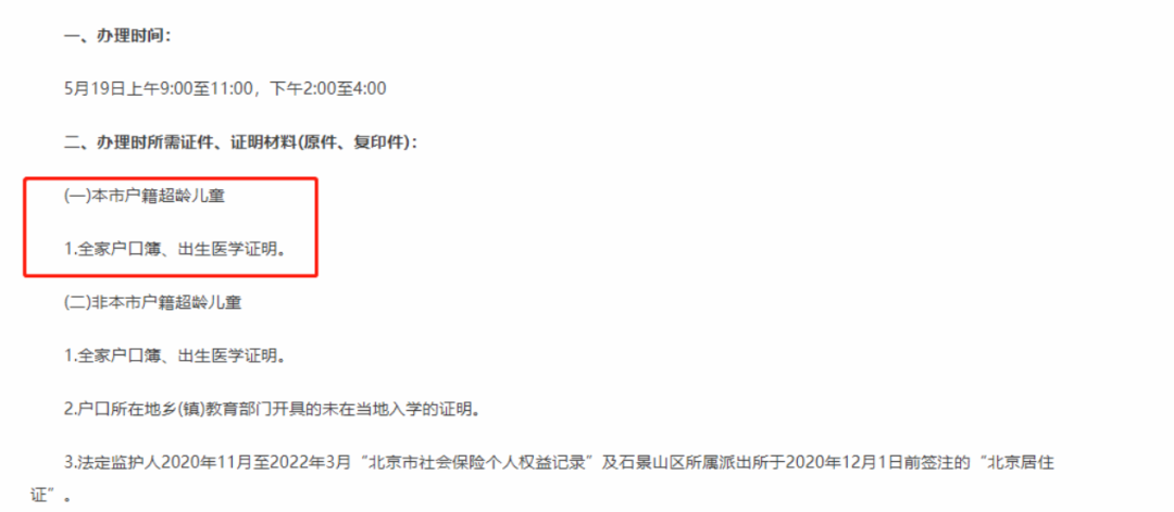 说明:以下整理了石景山区2022年超龄儿童入学要求家长参考准备,其他城区超龄入学可点击左下角阅读原文查看!