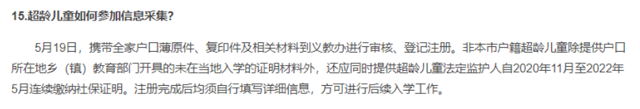 参考2022年石景山区义务教育入学咨询解答(100问),超龄儿童信息采集方式为: