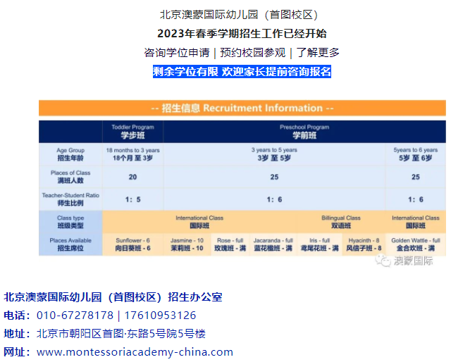 朝阳区北京澳蒙国际幼儿园2023年春季招生通知