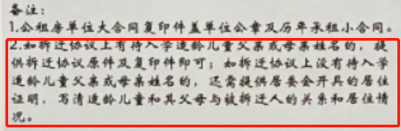 1.如拆迁协议上有待入学适龄儿童父亲或母亲姓名的,提供拆迁协议原件及复印件即可;