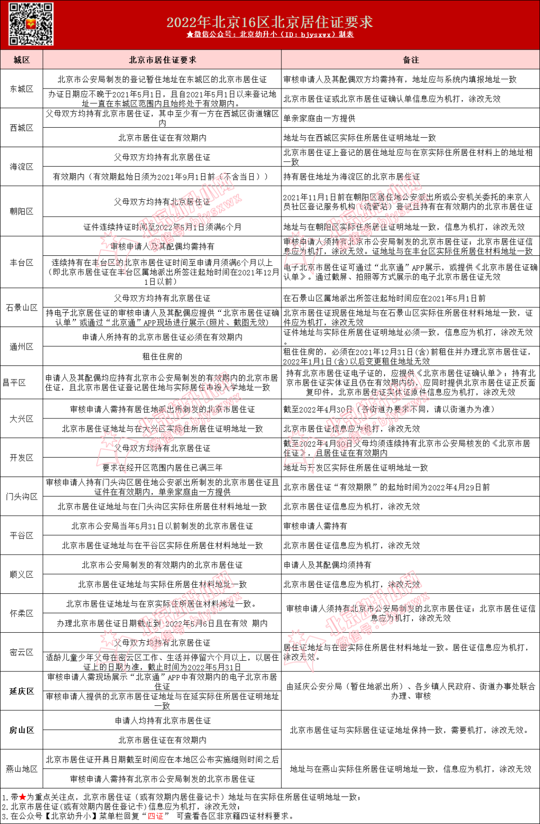 提醒:北京各区对居住证审核要求不尽相同,有以下几点需要家长重点关注: