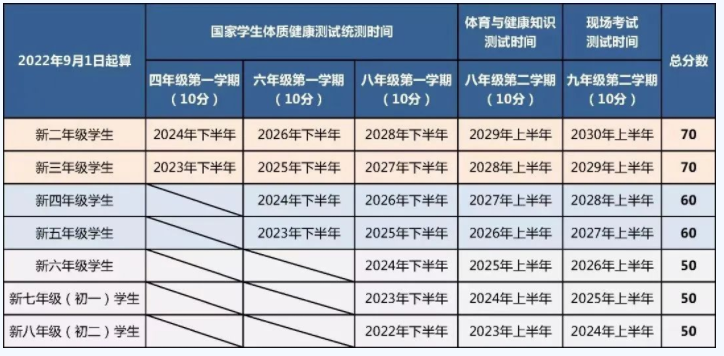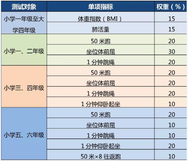 为落实立德树人根本任务,践行五育并举,强化以体育人,倡导快乐体育,秉承“无体育不教育”的理念。2021年12月北京市义务教育体育与健康考核评价方案正式出台,通过分年级进行过渡、逐步推开,直到全面推进。小学四、六年级体质健康测试成绩将纳入中考成绩。本次考核评价共分为两个部分:一是过程性考核(四、六、八年级)分值40分;二是现场考核(九年级)分值30分。根据《国家学生体质健康标准(2014 年修订)》对四、六、八年级进行测试项目的区级统一考核。2023年秋季第一学期,也就是现在的三年级、五年级将迎来首次小学阶段过程性考核。希望家长对学生的过程性考核予以重视,配合学校做好相关工作。