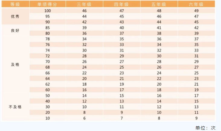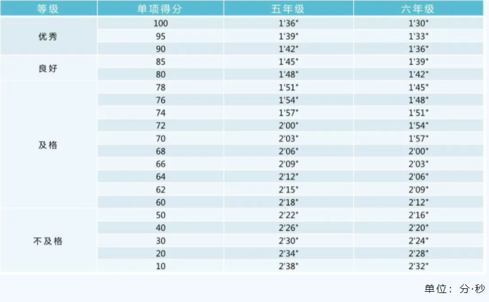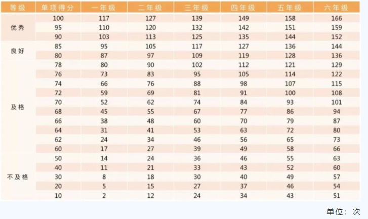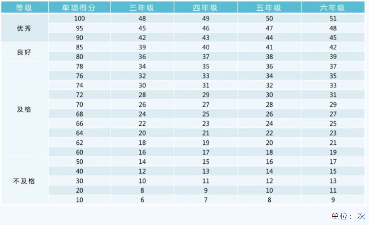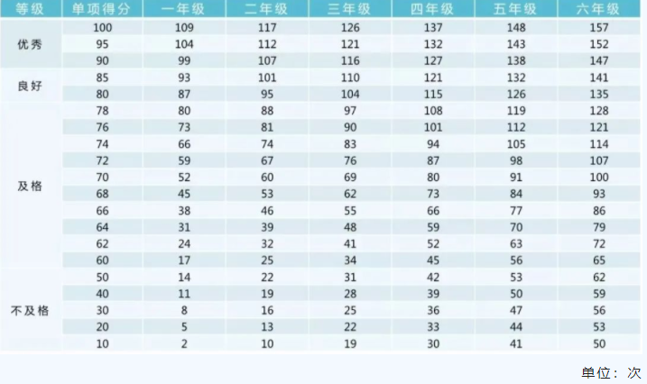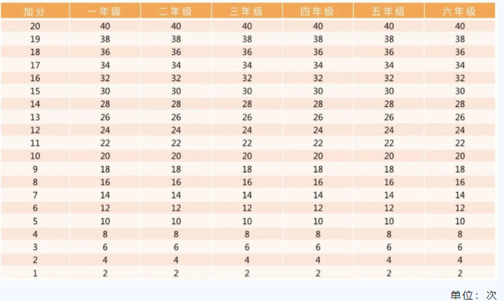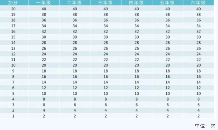 注:一分钟跳绳为高优指标,学生成绩超过单项评分100分后,以超过的次数所对应的分数进行加分。