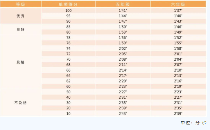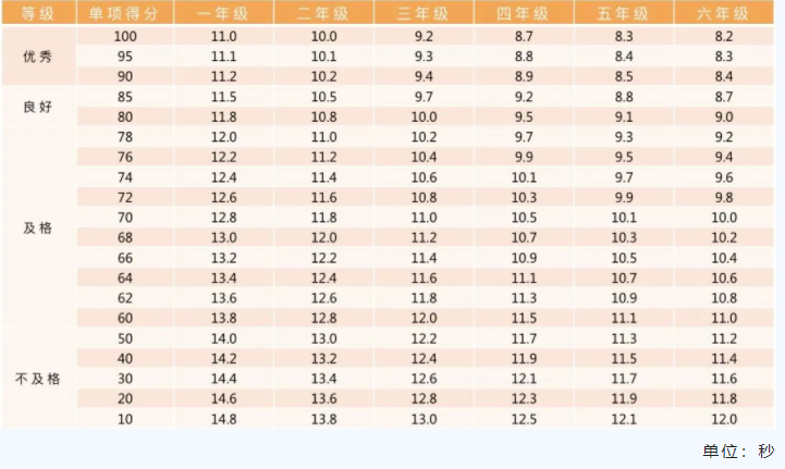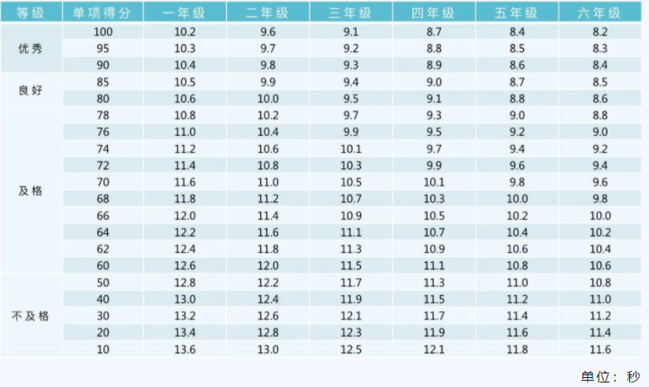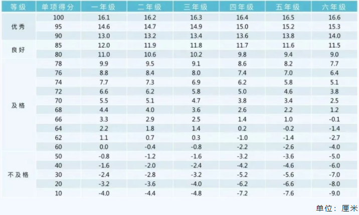 小学男生评分标准