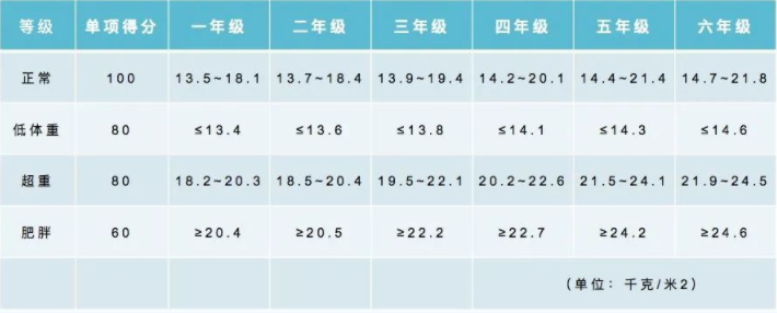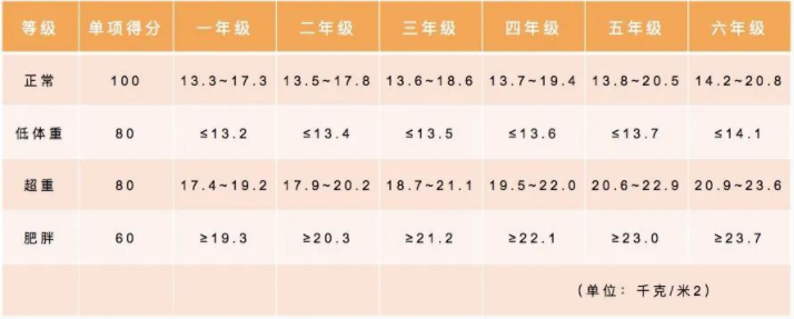 体重指数(BMI)评分标准