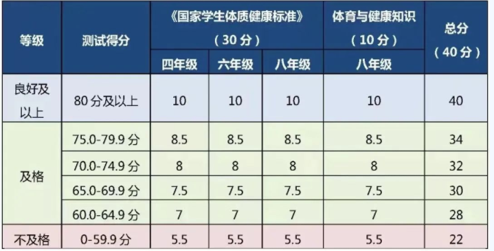小学男生加分评分标准