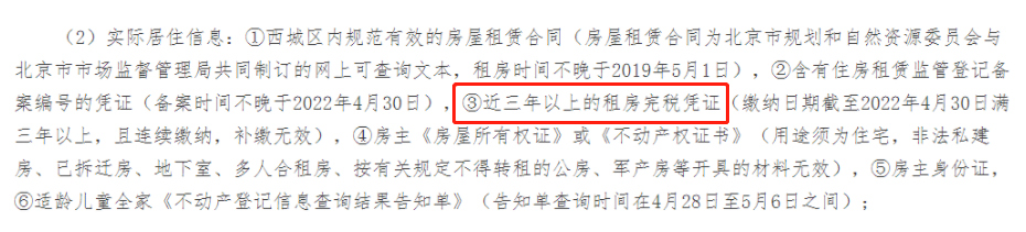 参考西城区2022年京籍无房家庭非户籍区租房入学政策,本市外区户籍无房家庭在西城区租房入学租房完税证明要求: