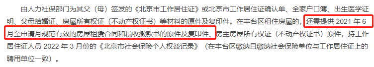 参考丰台区持北京工作居住证入学材料、入学流程,丰台区需提供入学前一年6 月至申请月规范有效的房屋租赁合同和税收缴款书的原件及复印件: