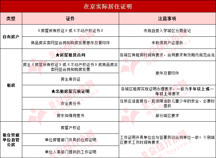 再次提醒各位家长,2023年非京籍幼升小入学所需提供的在京实际居住证明材料不同,主要有如下两种情况: