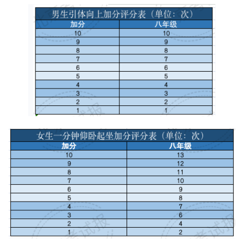 2022年北京八年级体测加分评分表:男生引体向上、女生一分钟仰卧起坐加分标准