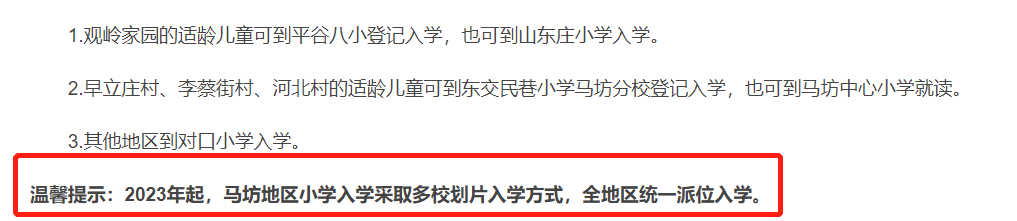 划重点:2022年1月1日以后购买房屋的,实行多校划片,派位入学,详细内容请查看:2023年幼升小平谷区多校划片政策详细解读。