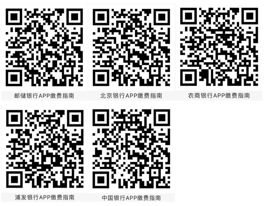 参保人可在缴费时间内(征期日历:每月5-20日期间的工作日15:00前)(批扣日无法缴费),通过邮储、北京、农商、浦发、中国银行APP为本人或他人办理城乡居民社保费缴费业务。(后附上述五家银行APP缴费操作流程二维码,扫码即可详细了解)