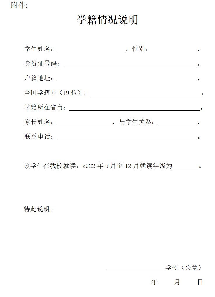 2022-2023学年度第二学期西城区公办小学转学学籍情况说明表模板下载