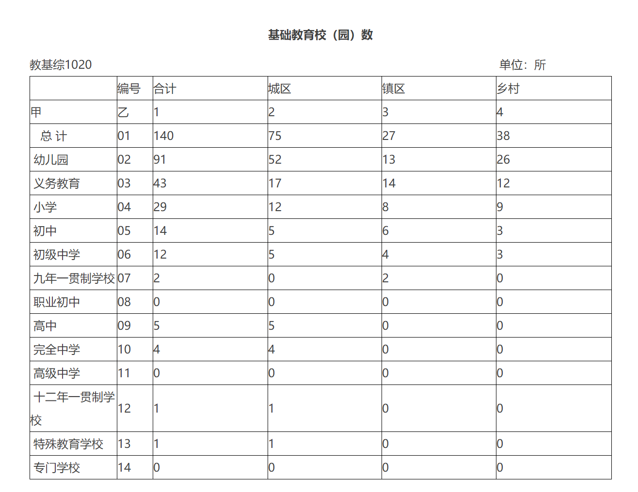 2022年平谷区基础教育数量:各类别学校数量统计表