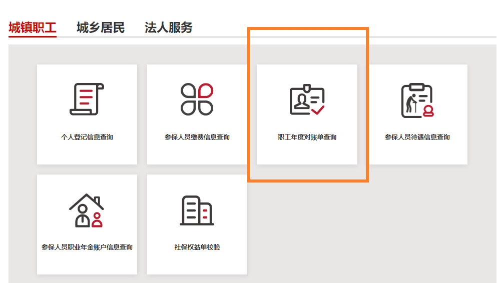 第二步:在“城镇职工”版块,点击【职工年度对账单查询】按钮。