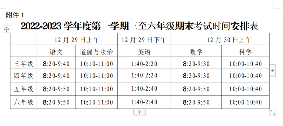 据家长介绍,通州区芙蓉小学通知12月29日开始期末考试;北京小学通州分校四年级通知12月29、30日考试;黄城根小学也发布通知,12月29日、20日期末考试,“期末考试时间是老师线上开家长会告知的,数学是29日08:20到09:30、英语是12月30日08:20到09:10,其余三科老师没有说。”该学校一学生家长说道。