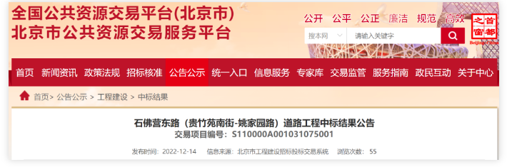除了朝阳平房乡姚家园新村三期安置房项目之外,石佛营东路(贵竹苑南街-姚家园路)道路工程也公示中标,即将开建!