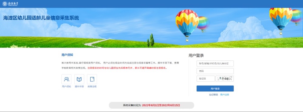 2022年海淀区网上信息采集时间:6月1日-6月15日(2023年入园家长可参考)