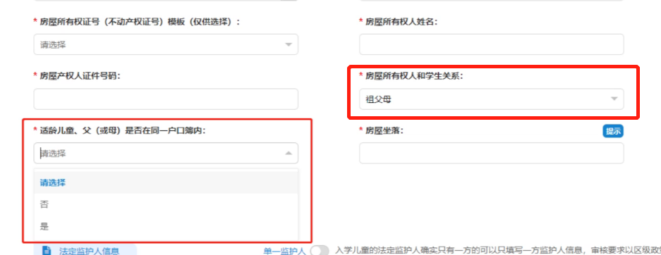 参考2023年幼升小昌平区小学入学数据调查填报流程:如房产为四老房产,即使用祖父母/外祖父母房产时,并填写父母与产权人是否在同一户口本内