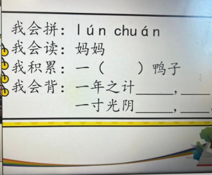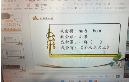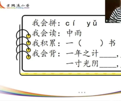 为了考察学生汉语拼音的掌握情况,老师们精心选取了贴近生活的音节词,同学们开启麦克风和摄像头,声音洪亮,正确流利地进行拼读。