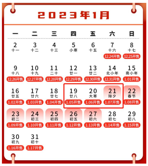 1月19日开售时间:1月5日