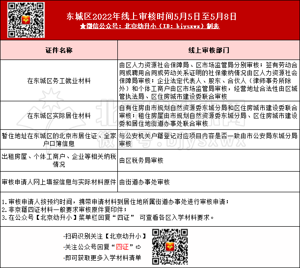 2023年非京籍幼升小:东城区入学材料线上审核部门及审核时间参考