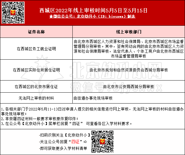 2023年非京籍幼升小:西城区入学材料线上审核部门及审核时间参考