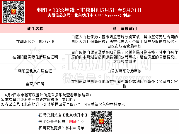 2023年非京籍幼升小:朝阳区入学材料线上审核部门及审核时间参考