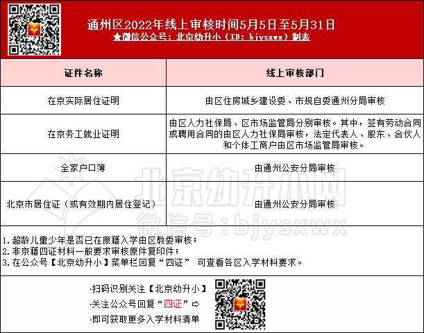 2023年非京籍幼升小:通州区入学材料线上审核部门及审核时间参考