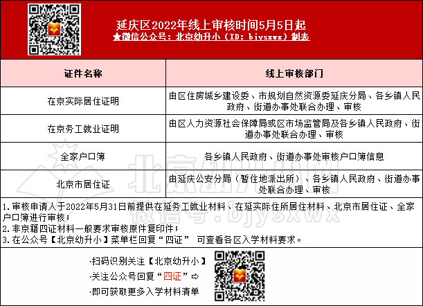 2023年非京籍幼升小:延庆区入学材料线上审核部门及审核时间参考