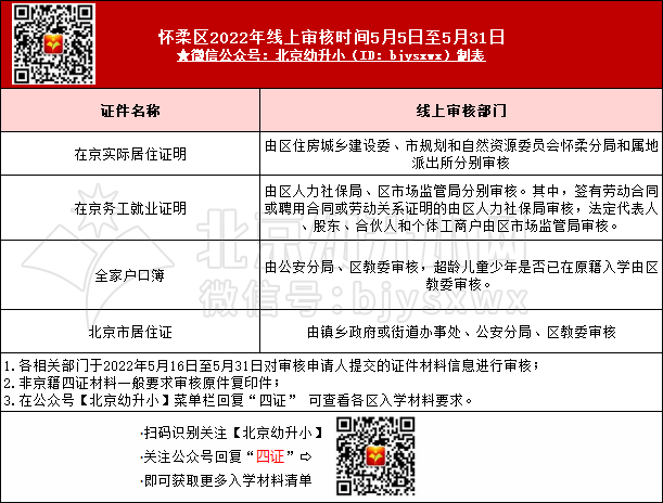 2023年非京籍幼升小:怀柔区入学材料线上审核部门及审核时间参考